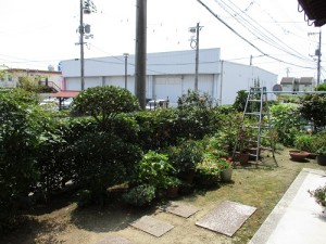 中庭には段物で主木のクロガネモチ、ヒイラギ、モッコク